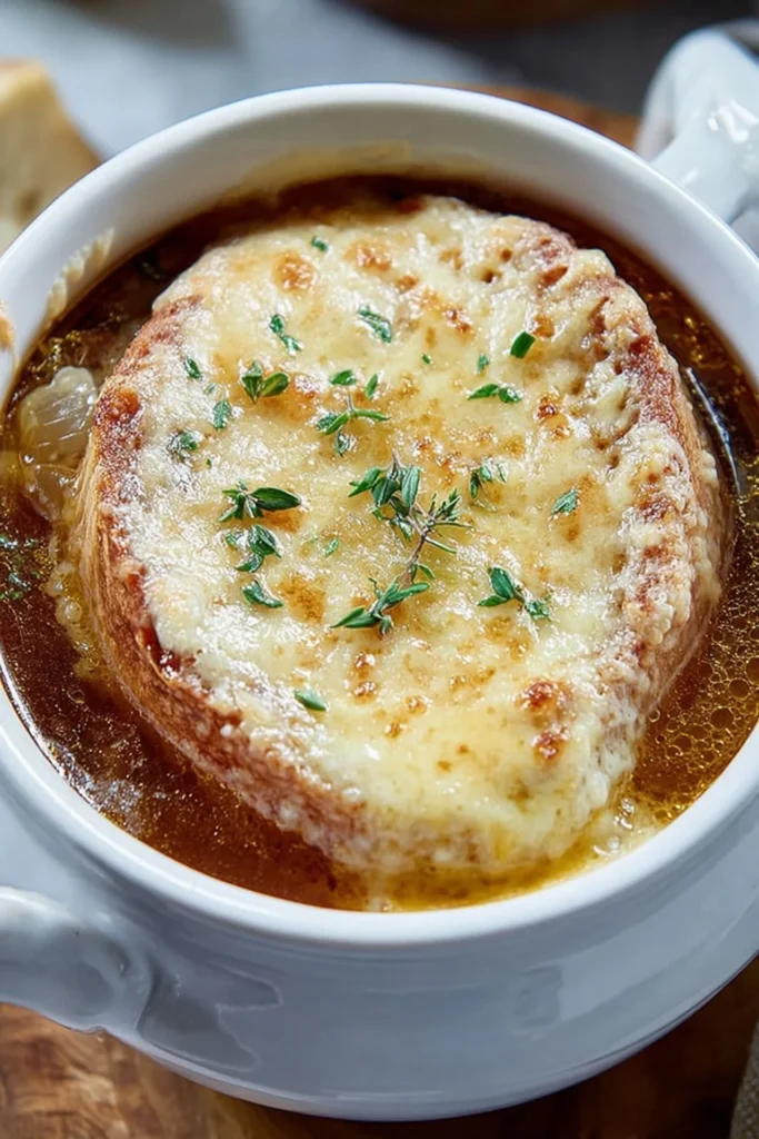 Caramelized onions in a rich beef broth topped with melted cheese is pure comfort.