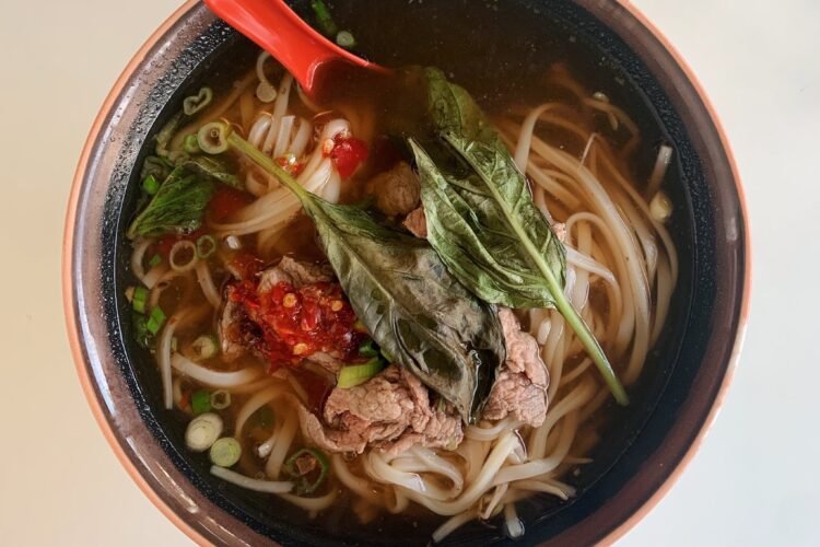 A fragrant Vietnamese soup with rice noodles, herbs, and rich broth.
