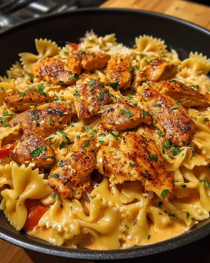 https://cookingtaste.net/one-skillet-creamy-cajun-buffalo-chicken-bowtie-pasta/